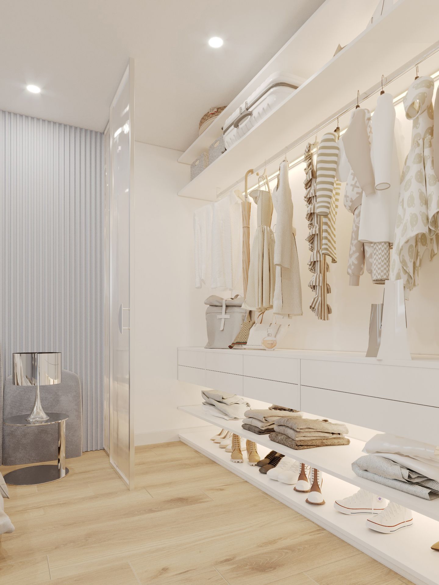 This interior was designed for a modern family apartment on Eversbuschstraße in Munich. The design combines natural materials, calm colors, and functional zoning in accordance with the rhythm of urban family life.